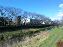 柴崎駅から甲州街道に出て西へ向かって進むと、間もなく野川と交差する。右折して川沿いを歩く。数年前のNHK朝ドラ「ゲゲゲの女房」では、ヒロインが自転車に乗って野川辺を走る姿がよく写っていたが、平成21世紀になっても変わらぬのんびりした風情。散歩する老夫婦や、河原に出て遊んでいる保育園児のグループ。風はやや冷たいが、すっかり春になった陽射しが河原に濃い樹の枝の影を落としている。