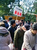 不信心者にはこれで用済みのだるま市だが、午後から「お練り行列」があるので、それまでの時間つぶしにまずは蕎麦店へ。このぶんでは、蕎麦屋もどこも行列かと思ったが、信心厚い皆さんは、だるま選びや目入れ行列並びのほうにいるので、店はどこもそれほど混んでいない。いつもの「青木屋」さんで盛蕎麦を頼む。深大寺のお蕎麦屋さんはどこもコシがあって美味しいお蕎麦でハズレはないので、お財布に優しい所が一番よい。店内は半分くらいの席が埋まっているが、普段からみるとこれでも混雑状態らしく、臨時アルバイトのお兄ちゃんが、箸も取らぬうちからもう蕎麦湯を持ってくる。さっさと食し、回転率向上に貢献する。