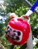 とてもこの行列に並んで待つ根性はないので、小さなストラップを買って記念にする。梵字は目玉でなくお腹に書かれていて、傾けると目玉が飛び出すのがご愛敬。