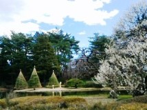 梅は終わりかけているが、大木の椿や、クリスマスローズ・福寿草などの草花も楽しめる。野草園はまだほとんど花は見つからないが、小さな小さな白い花が開きかけているのを、膝をついて熱心にカメラにおさめている人もいる。