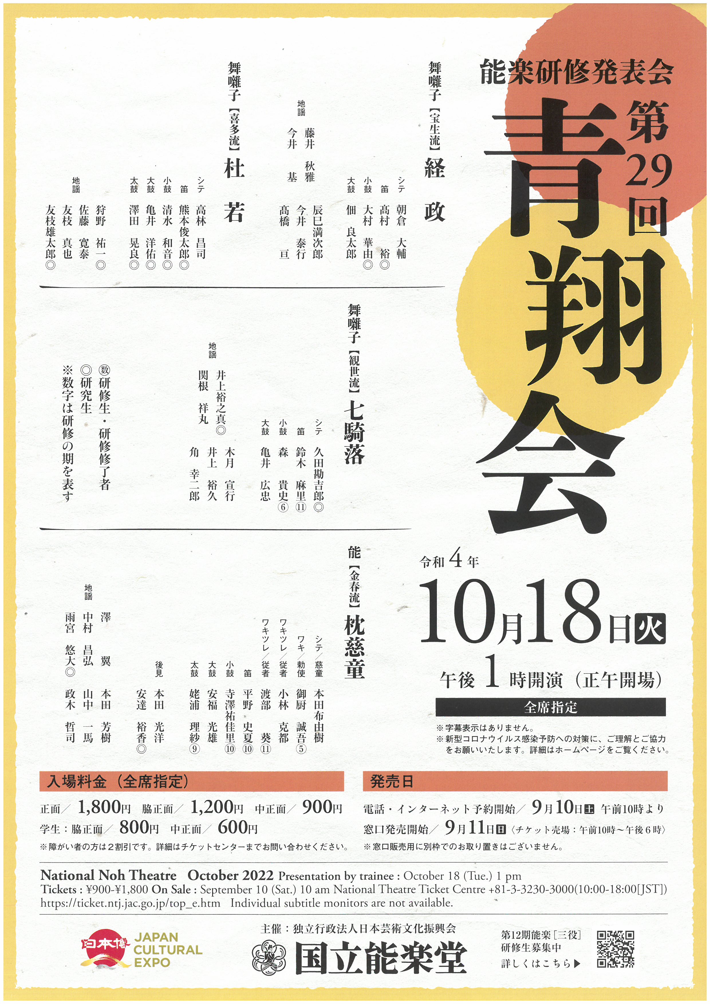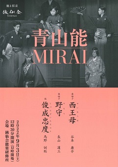 都合により9月3日青山能MIRAIの配役を下記の通り変更させて頂きますので、