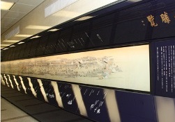 三越前駅の改札を出て地下コンコースに入ると、まずは17mに及ぶ絵巻「熈代勝覧(きだいしょうらん)」が目を引く。二百年前の日本橋(現在の中央通り)が克明に描かれた絵巻物の複製である。平成21年に、名橋「日本橋」保存会・日本橋地域ルネッサンス100年計画委員会・三井不動産株式会社が設置したものである。