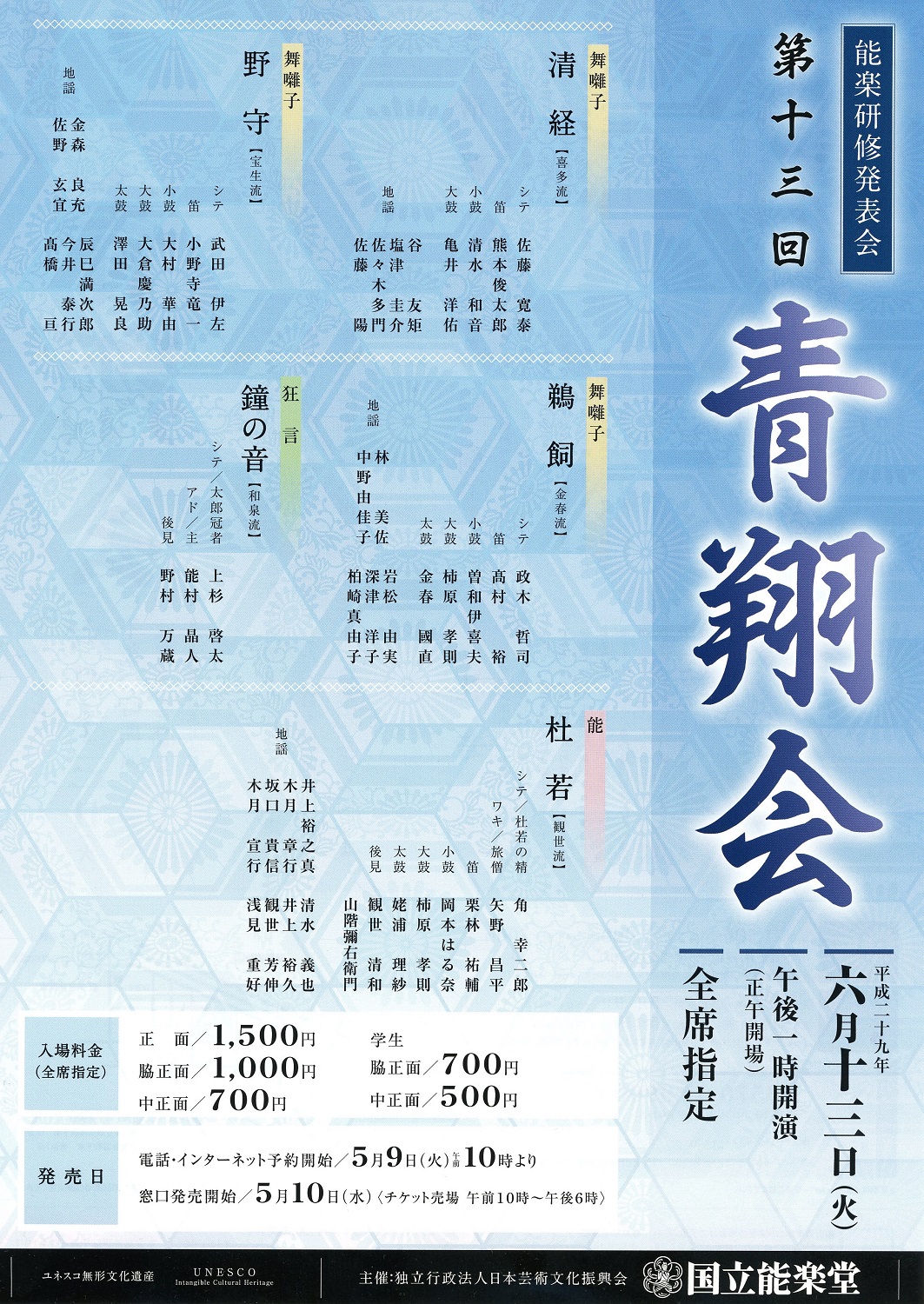 別なのか、親戚筋なのか? 検索してみたがよくわからない。青翔会のプログラムが前よりも薄くなり(サイズは一回り大きくなったのだが)前ほど出演者情報が詳しく記載されてないのが残念だ。囃子方にも女性メンバー(小鼓の大村華由さん)。